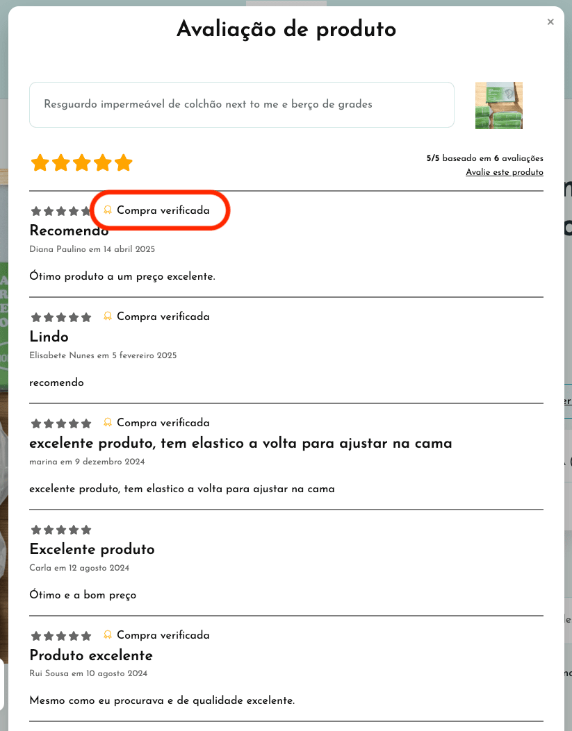 Ao clicar para ver os detalhes de cada avaliação, é possível encontrar a indicação "Compra verificada", que serve para identificar as que foram feitas por clientes que adquiriram o produto na loja.