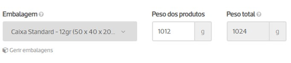 O peso total será calculado automaticamente com o peso da embalagem.