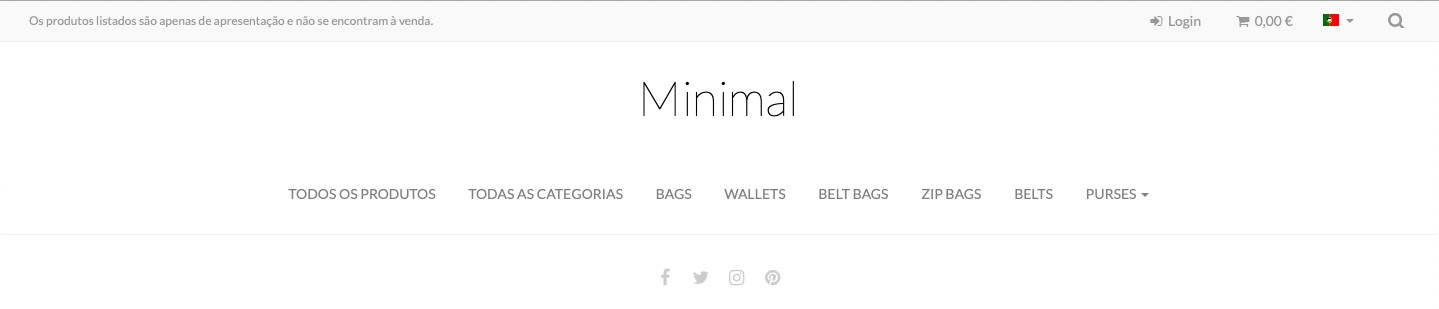 No template Minimal, apenas são apresentados produtos na página home.