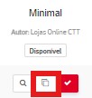 Caso pretenda fazer alguma alteração ao código original do template, pode clonar o mesmo e ter acesso aos ficheiros de código do template. Para isso, basta carregar no ícone correspondente no template que deseja clonar, no menu Aparência / Templates.