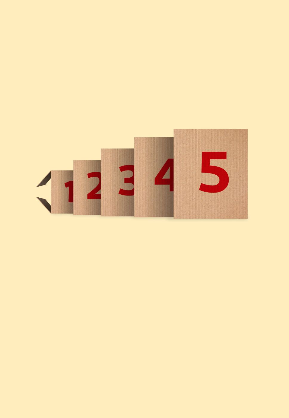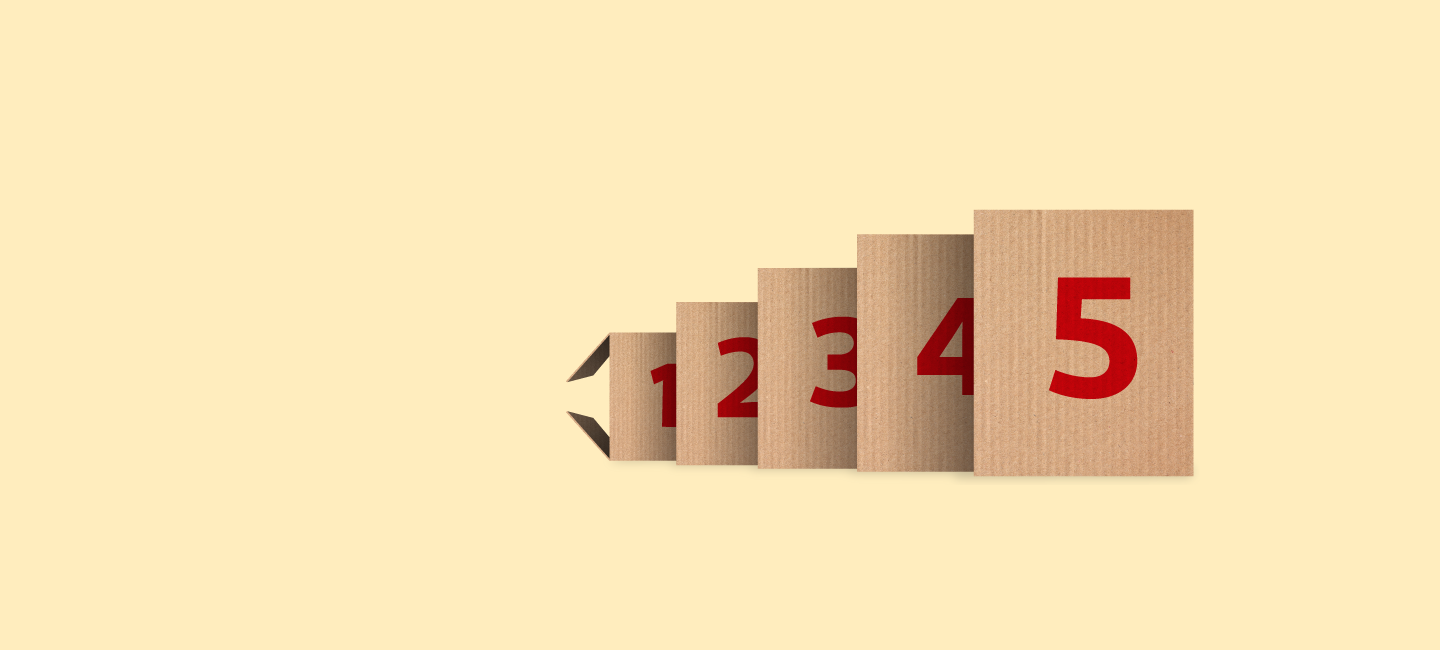 Saber mais 5 caixas de encomendas que simbolizam os 5 envios que compõem o Pack Expresso